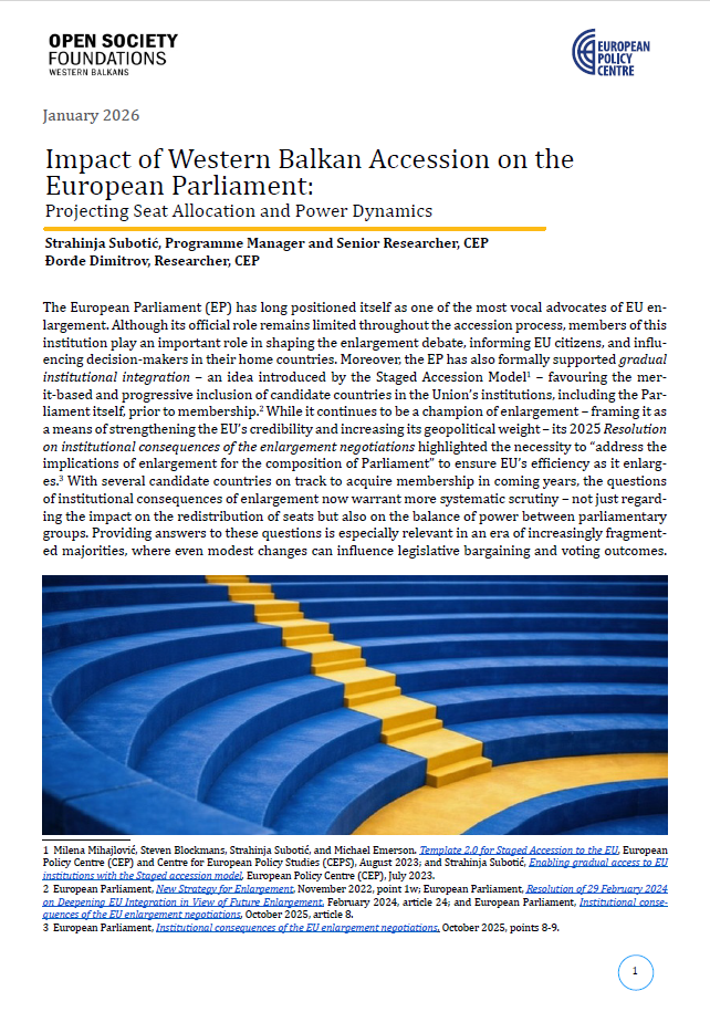1 The original Model was published in 2021. Only with its second iteration, in the form of Template 2.0 for Staged Accession in the EU, the introduction of safeguard clauses. Milena Mihajlović, Steven Blockmans, Strahinja Subotić, and Michael Emerson, Template 2.0 for Staged Accession to the EU, European Policy Centre (CEP) & Centre for European Policy Studies (CEPS), August 2023.